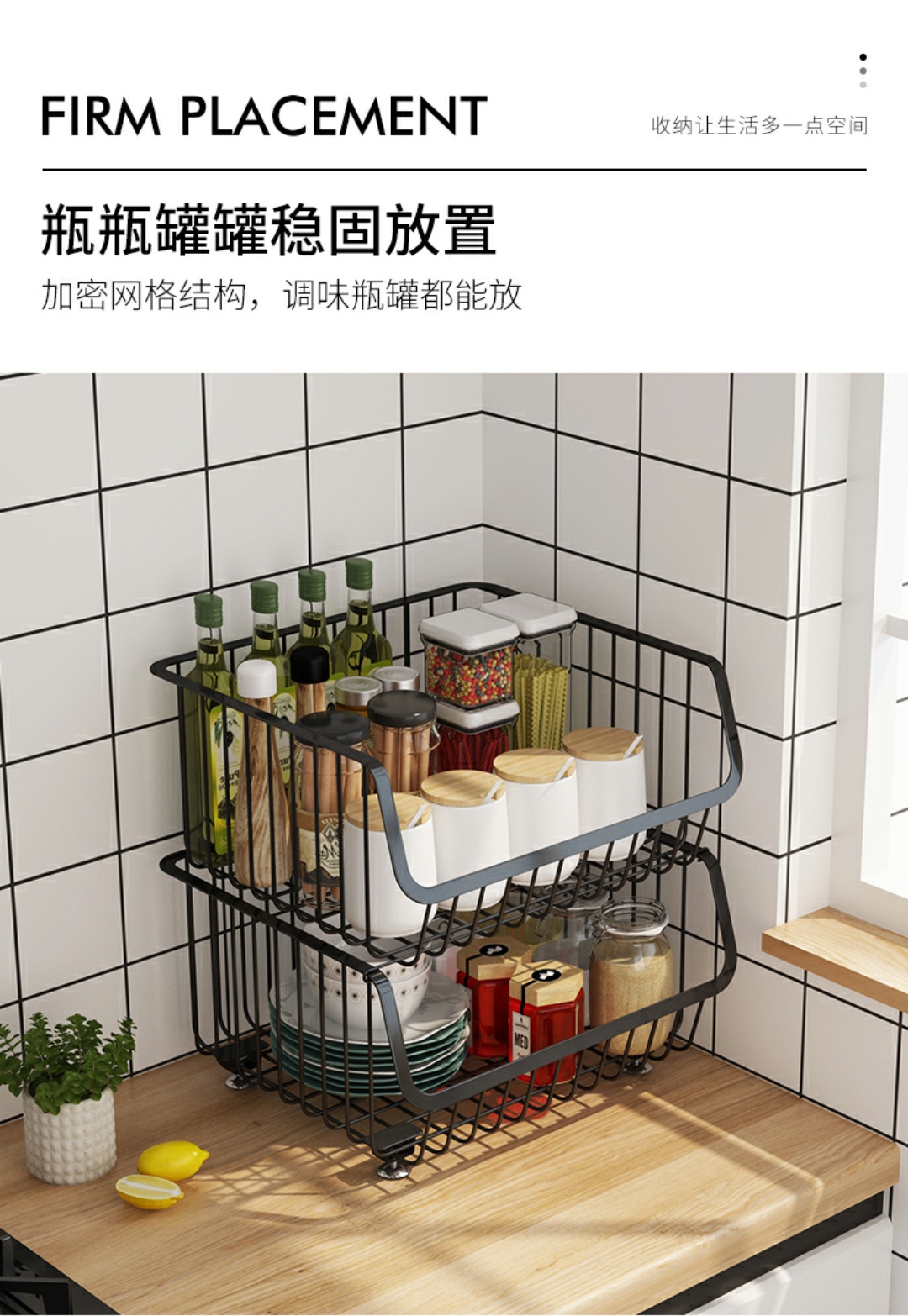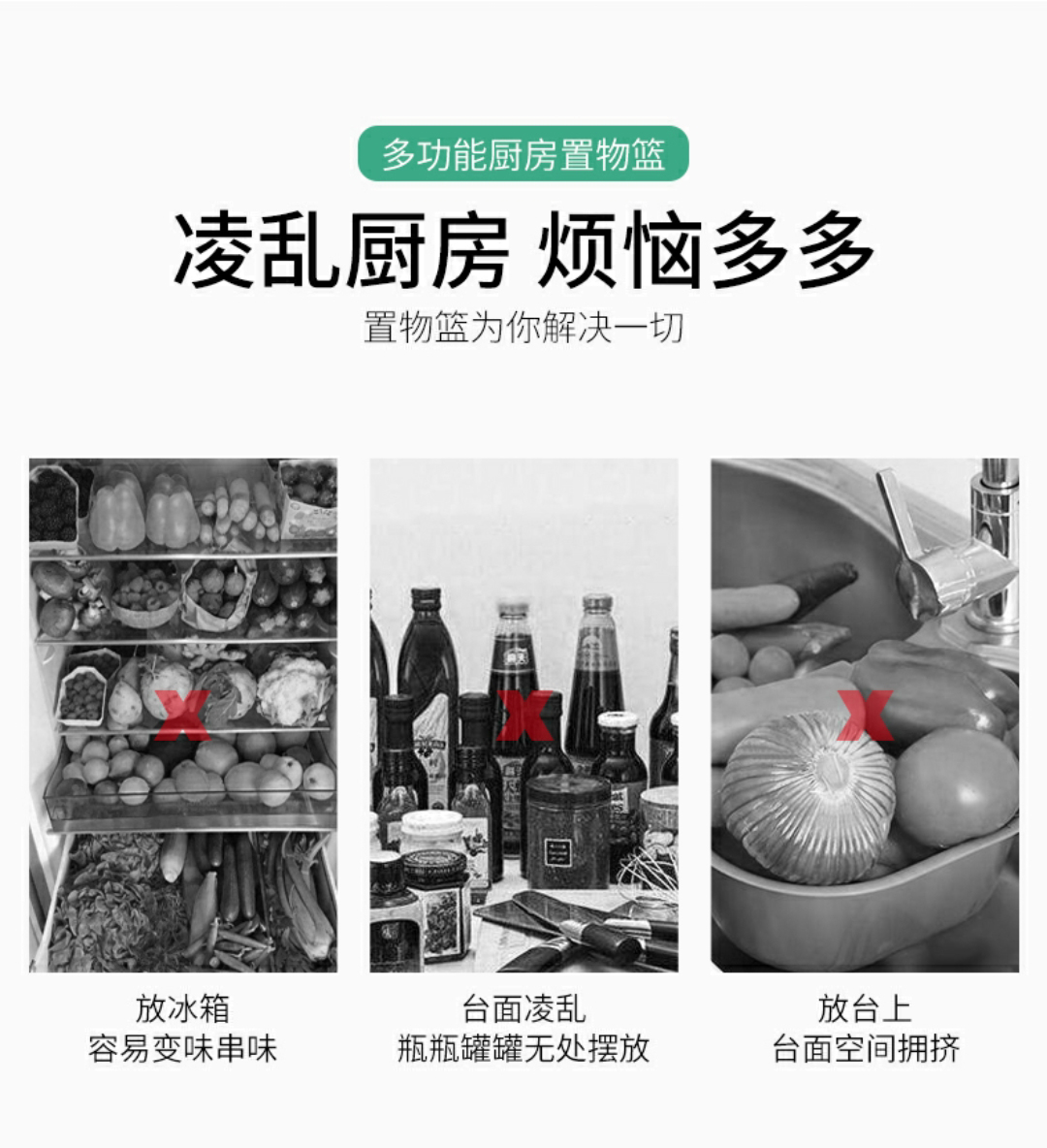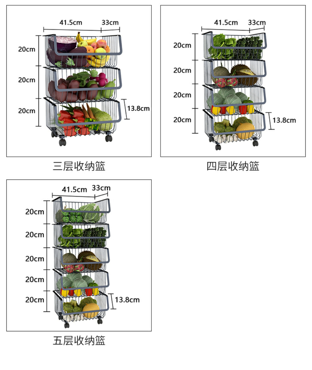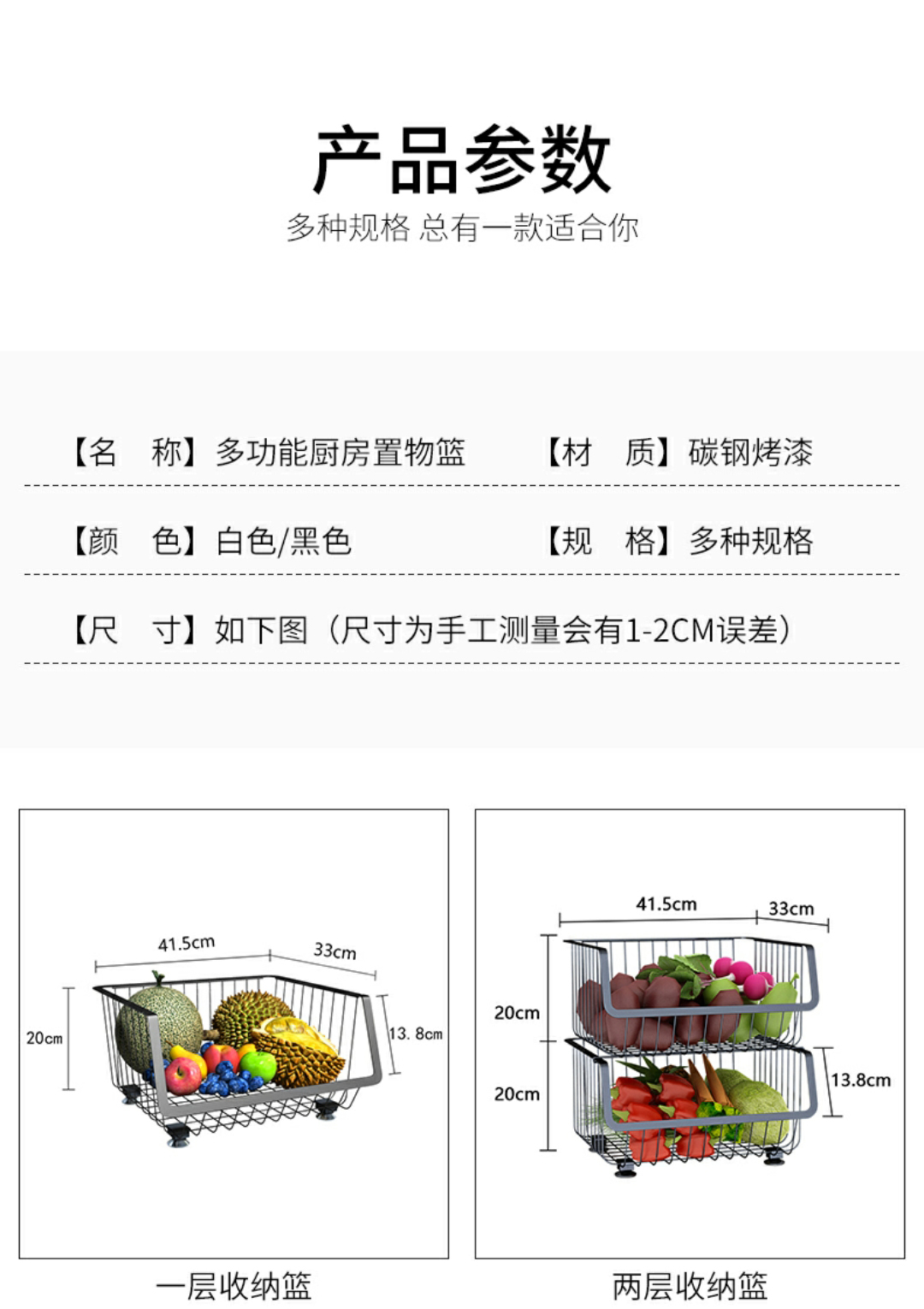 FAAHOI 大容量 多层收纳 客厅/厨房/卫浴多功能不锈钢置物篮/蔬果篮